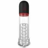 This amazing male enhancement device not only offers multiple suction intensities but also features multi-frequency vibration. In terms of suction alone, it far surpasses similar products. The meticulously designed suction buttons are divided into two: a threaded button that switches between three fixed-frequency suction intensities, from strong to medium to weak. After the toy is activated, pressing this button will continuously suck and stretch your penis at one of the three intensities until the button is pressed again to pause. Additionally, a button with an arrow symbol controls nine cyclic suction modes, meaning the suction and desiccation functions within the transparent cylinder will operate in any of the nine modes. You can freely choose the most stimulating mode without worrying about discomfort from excessive suction. The addition of vibration undoubtedly elevates this enhancer to a new level, delivering an even more intense sexual pleasure. Your penis enjoys powerful suction while experiencing vibration pulses at nine different frequencies. It's truly amazing! Furthermore, the transparent silicone sleeve, composed of six interconnected hollow spheres with varying internal textures, provides an incredible sense of envelopment and friction. Throughout the process, you can clearly observe how thick, long, and magnificent your penis becomes through the transparent cylinder and the scales on its side! To clean, simply remove the inner sleeve and the transparent outer shell, and wash with mild soapy water or toy cleaning solution.